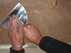 Je travaille avec Inès de la purification sur les enduits de finition.